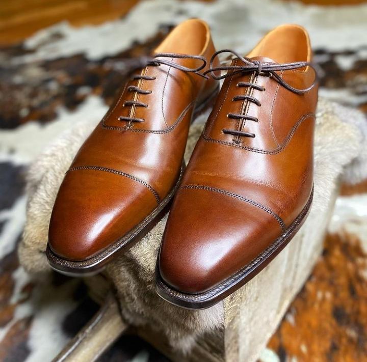 Men's Hand Stitch Brown Cap toe Leather Lace Up Formal Shoes