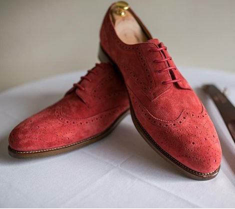 Men's Christmas Red Suede Wingtip Handmade Lace Up Formal Shoes Material: