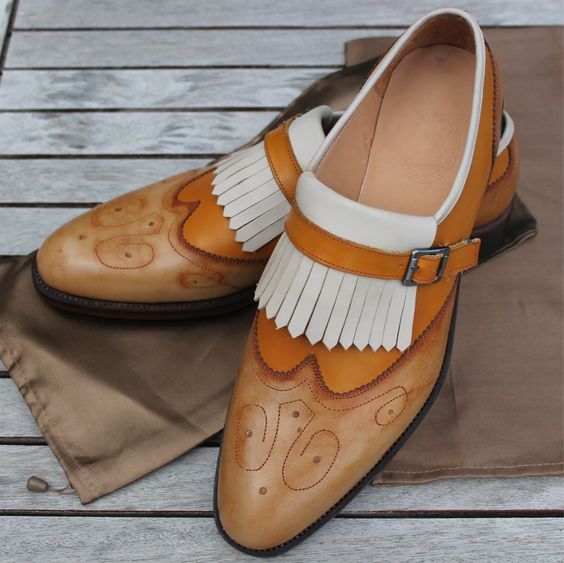 Unique Multi Leather Skin Hand Made Wingtip Monk Strap Dress British Style Shoes