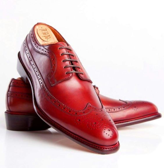 Handmade Men's Red Wingtip Genuine Leather Lace Up Formal Wear Shoes