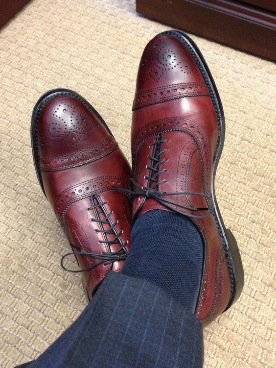 Elegant Men's Hand Stitch Burgundy Oxfords Captoe Brogue Lace Up Leather Shoes