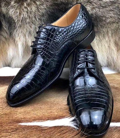 Men's Black Crocodile Leather Italian Style Handmade Shoes