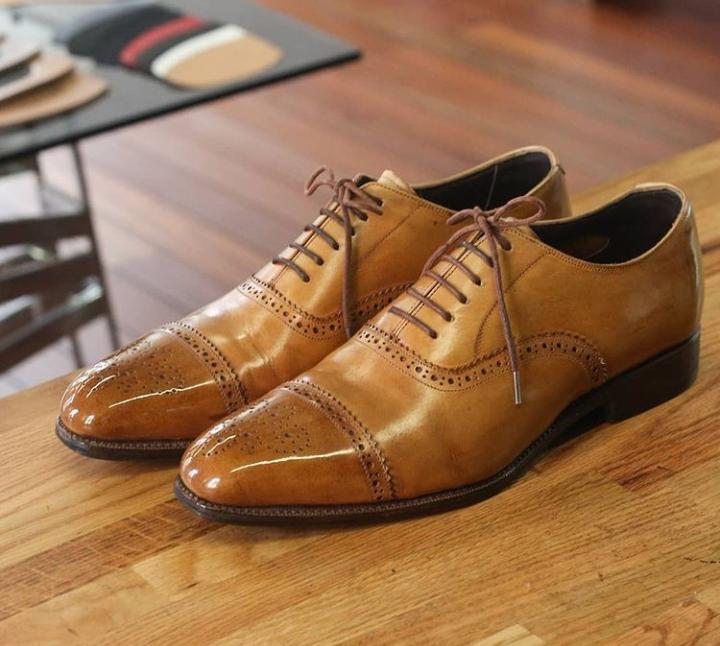 New Handmade Brown Oxfords Cap Toe Leather Lace Up Office Shoes