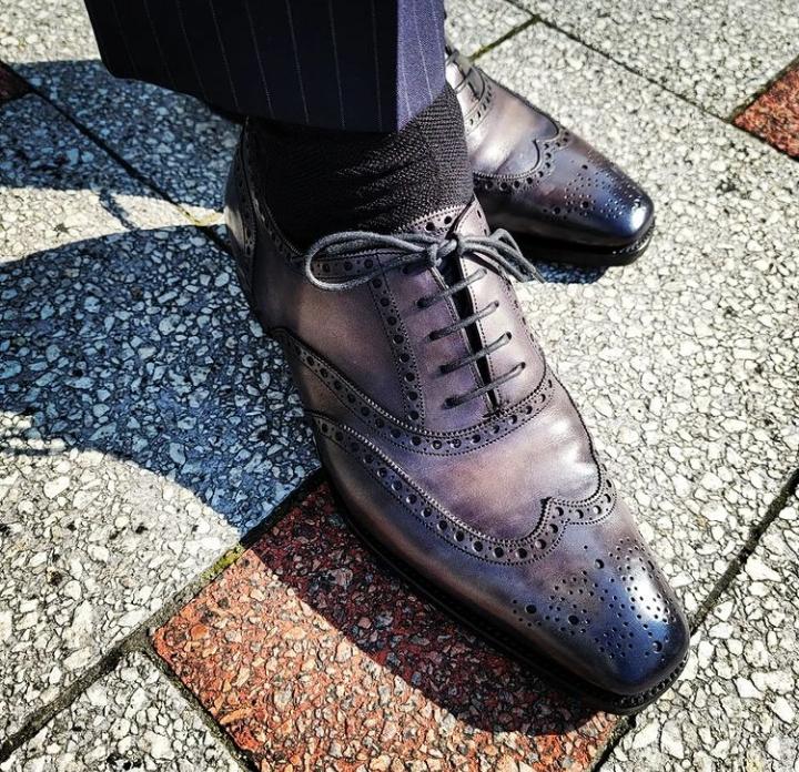 Christmas Gift Men's Hand Stitch Two Tone Oxfords Leather Wingtip Brogue Lace Up Shoes