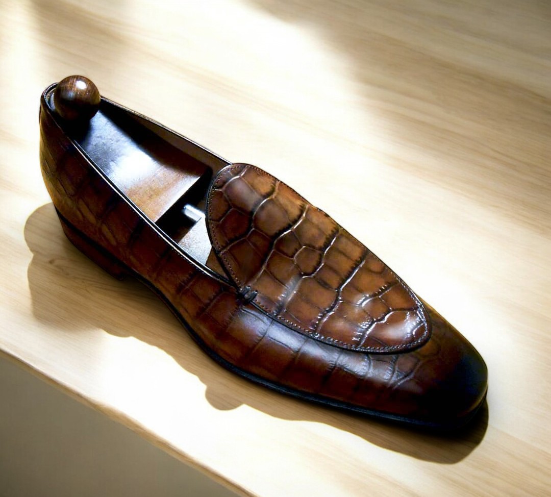 Classic Handmade Brown Alligator Leather Texture Loafers Shoes For Men Loafers Slips On Design
