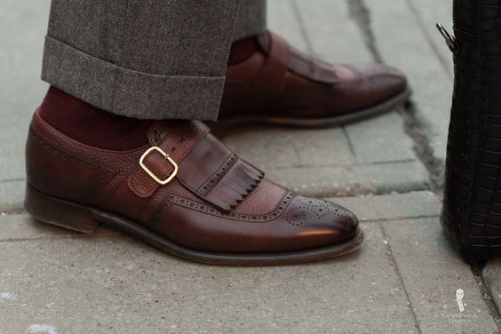 men's brown leather best selling handmade oxfords split brogue tow monk shoes