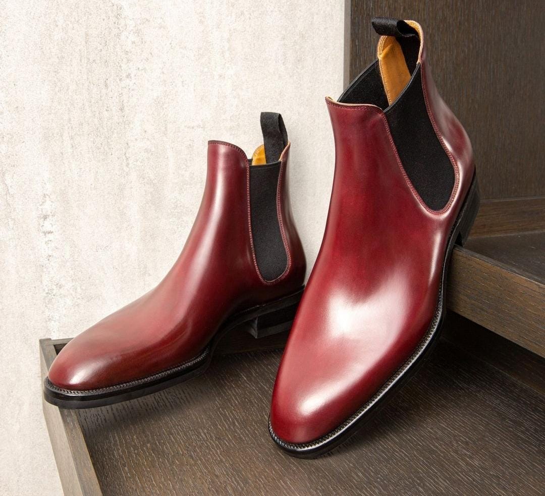 Handmade Men's Red Chelsea Ankle High Formal Boot For Big Festival Christmas