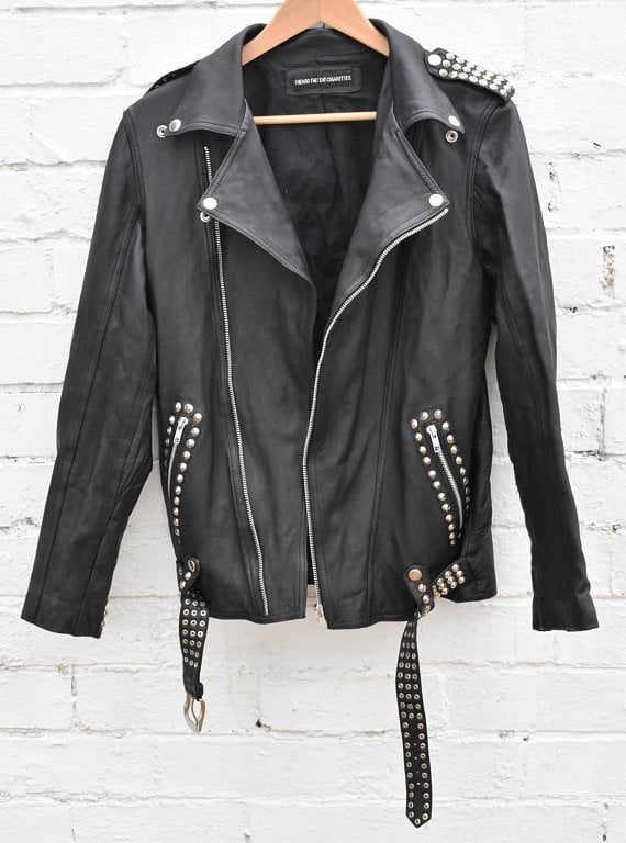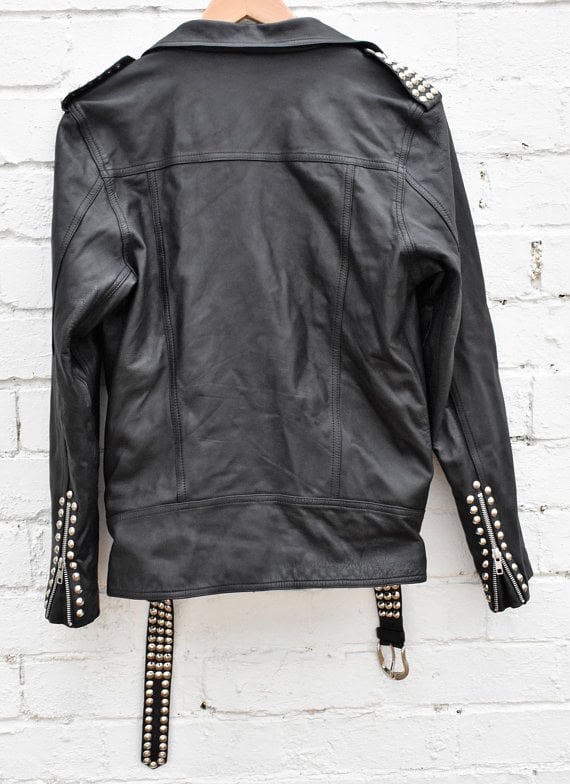 New Classic Black Genuine Leather Jacket Silver Studded Handmade For Men