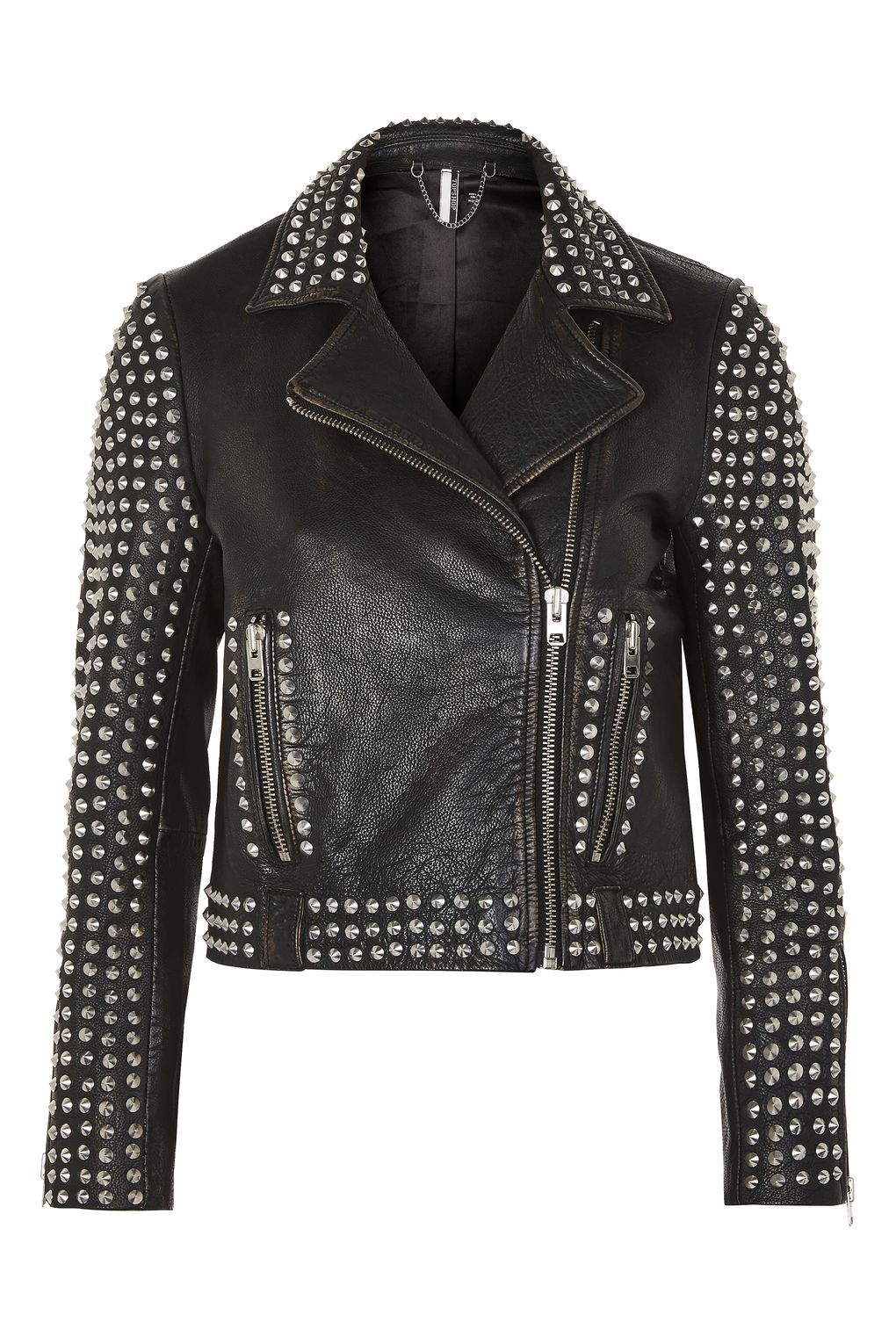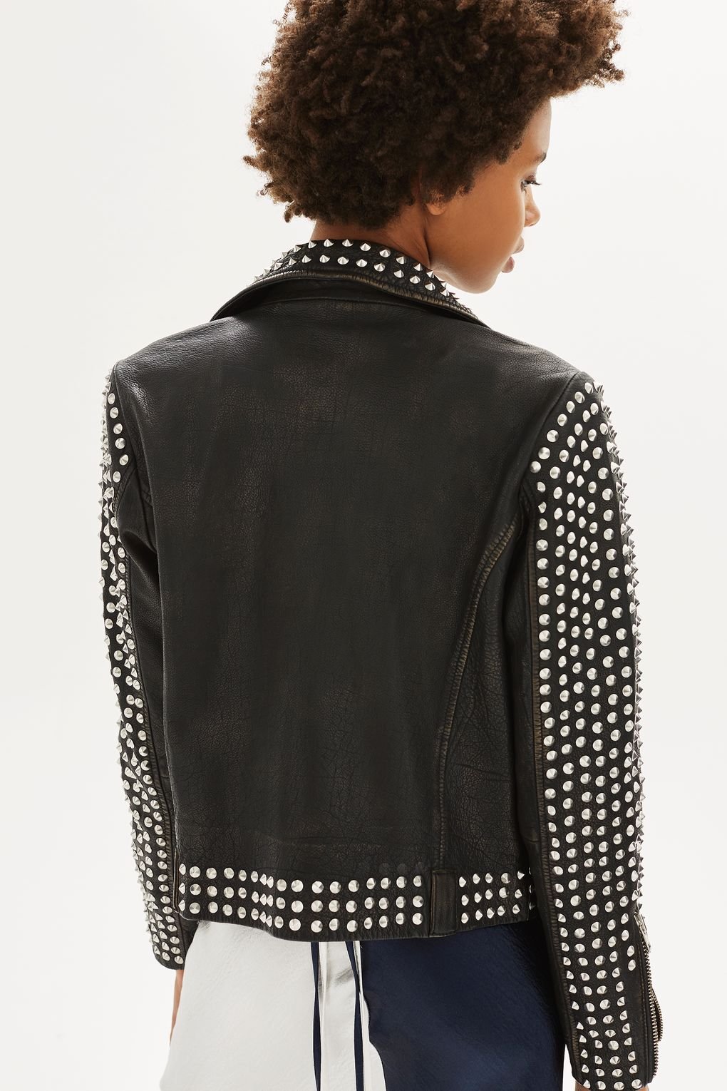 Trendy Handmade Black Front Zipper Genuine Biker Leather Jacket With Silver Studs For Women