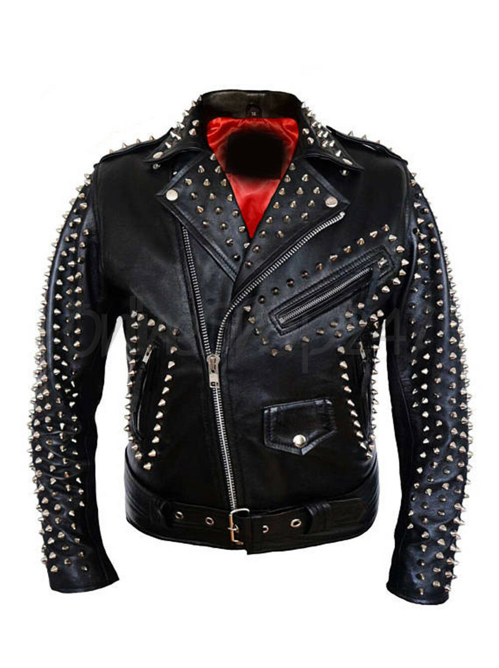 New Men's Handmade Punk Johnny Cap Black Full Silver Spiked Studded Stylish Brando Leather Jacket
