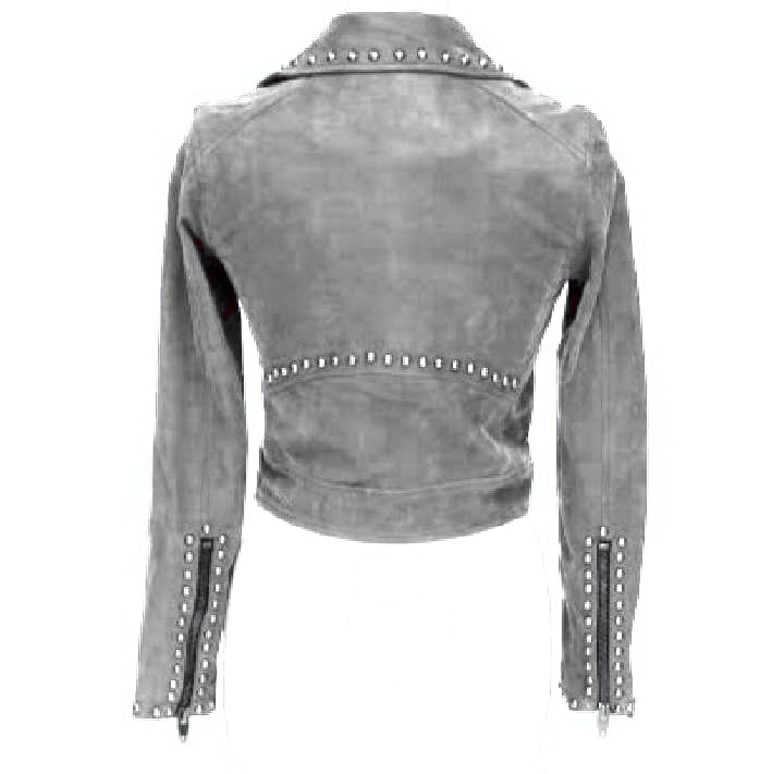New Gray Color Genuine Classical Leather Jacket Silver Studded Front Zipper For Men