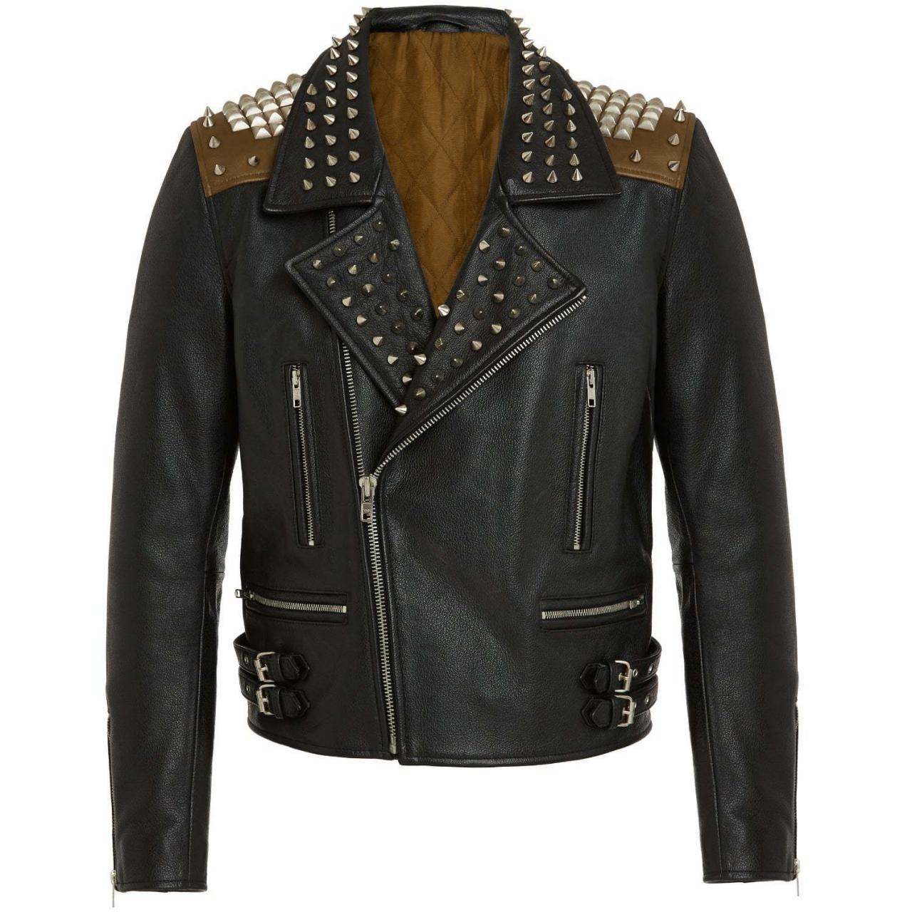 Black Genuine Real Leather Jacket Silver Studded Stylish Jacket For Mens