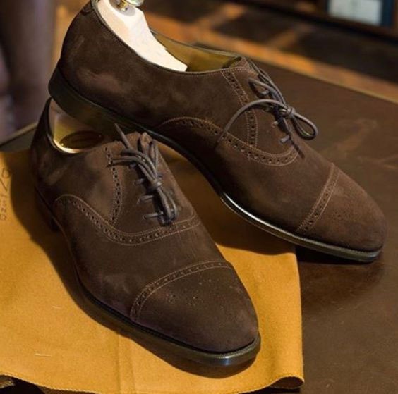 Handmade Chocolate Brown Cap Toe Designer Formal Event Shoes Material: