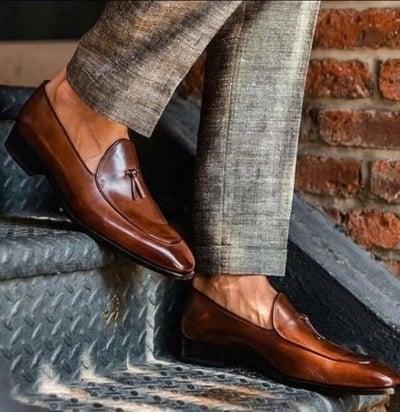 Hot Sale Men's Brown Tassels Loafer Genuine Leather Shoes