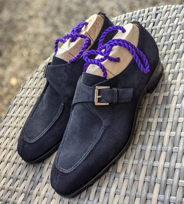 Decent Wear Men's Navy Blue Monk Shoes, Suede Formal Wear Shoes