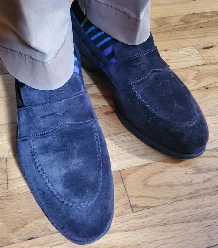 Casual Summers Week Wear Handmade Navy Blue Penny Loafers Suede Dress Shoes