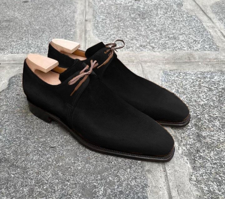 Trendy Men's Hand Stitch Black Chukka Lace Up Suede Formal Shoes