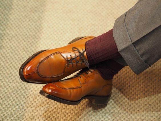 Top Quality Tan Brown Split Toe Lace Up Pure Leather Shoes Material: