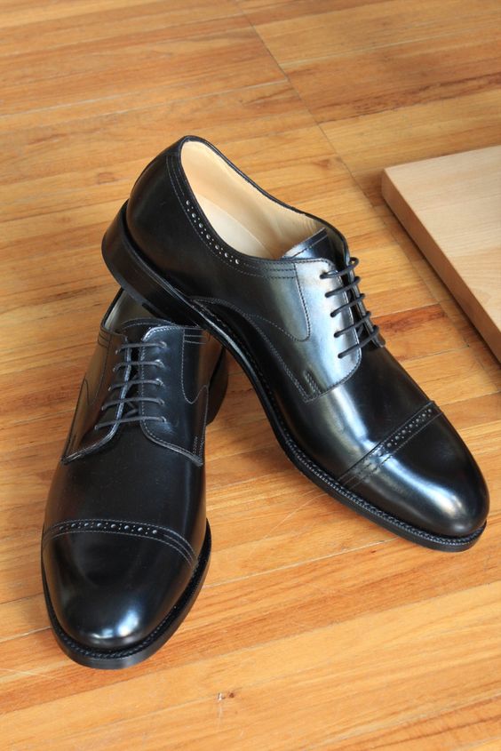 Elegant Black Cap Toe Leather Dressed Lace Up Shoes For Men's