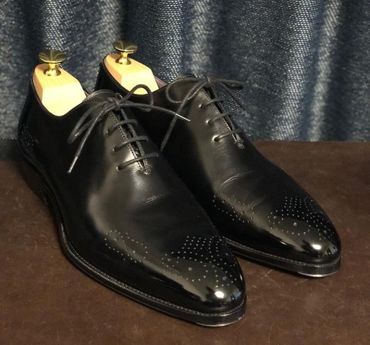 Christmas Men's Hand Made Black Brogue Leather Shoes, Lace Up Wedding Shoes