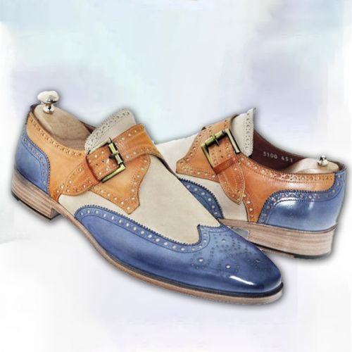 Men's Handmade Beautiful Customize Multi Leather Oxford Wingtip Monk Strap Formal Shoes