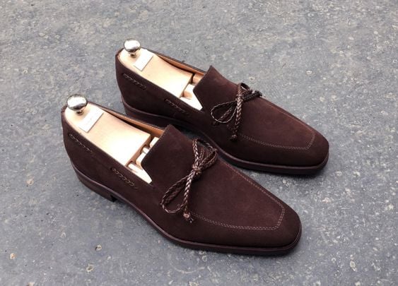 Top Style Chocolate Brown Hand Stitch Tassels Moccasin Suede Formal Wear Shoes