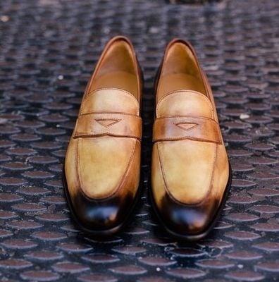 Handsome Look Men's Handmade Two Tone Polishing Penny Loafer Formal Wear Shoes