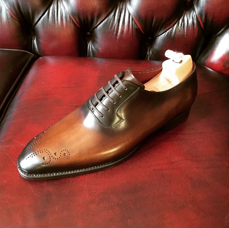 Classic Men's Hand Stitch Brown Black Contrast Brogue Leather Lace Up Shoes