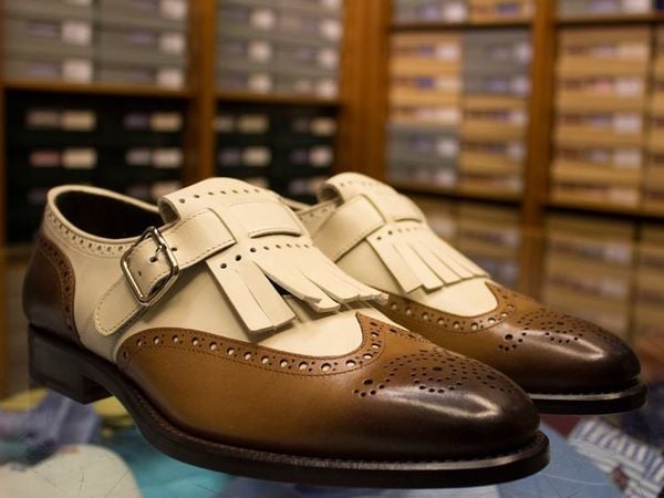 Luxury Men's Handmade Two Tone Fringe Monk Shoes, Leather Brogue Wedding Shoes