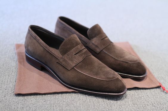 New Men's Chocolate Brown Suede Really Awesome Penny Loafers Slips On Formal Hand Made Shoes