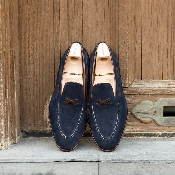 Latest Men's Hand Made Navy Blue Genuine Suede Shoes, Tassels Moccasin Formal Shoes