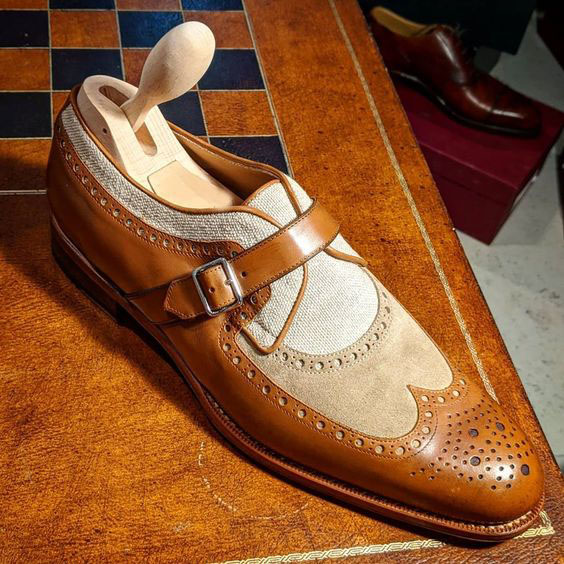 New Handmade Multicolored Single Monk Strap Shoes, Leather Suede Wedding Shoes