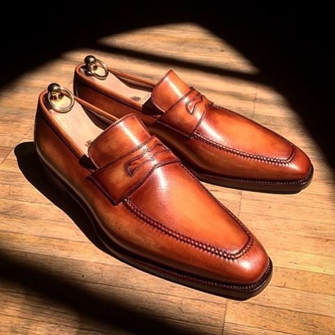 Unique Men's Hand Stitch Brown Moccasin On Loafer Leather Dress Wear Shoes