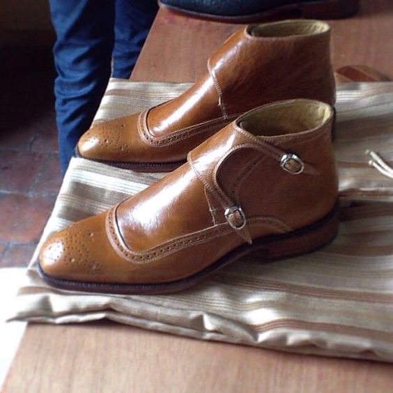 New Stylish Men's Hand Stitch Double Monk Strap Brogue Leather Boot Material: