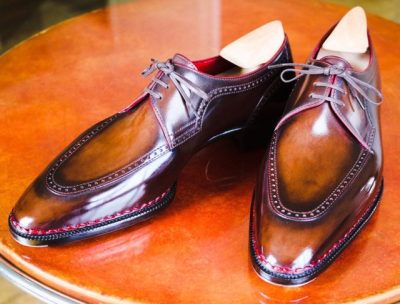 Men's Hand Stitch Brown Black Tone Leather Shoes, Lace Up Formal Wear Shoes