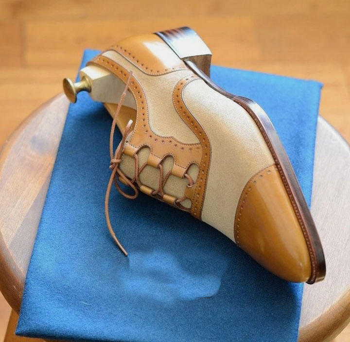 Hot Sale Christmas Men's Two Tone Shoes, Genuine Leather Lace Up Formal Shoes