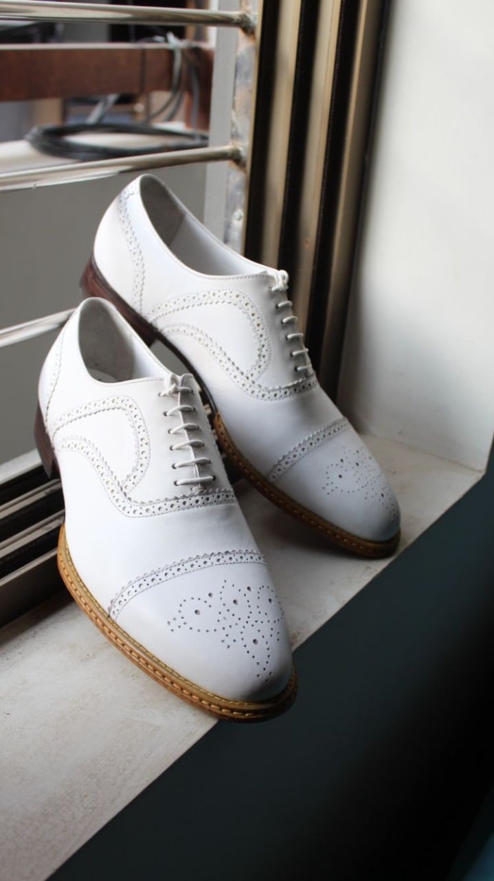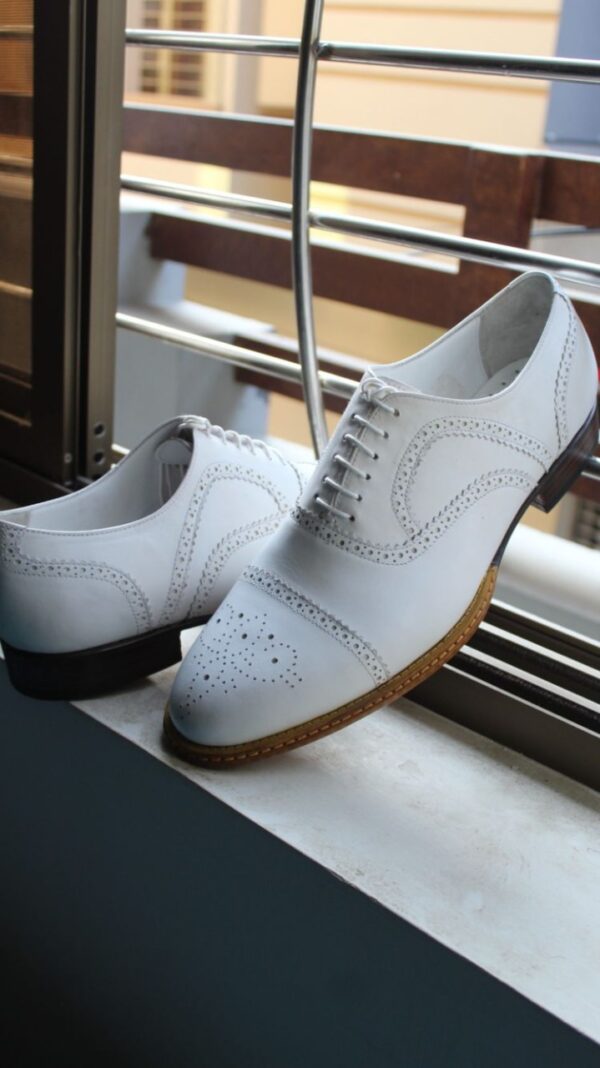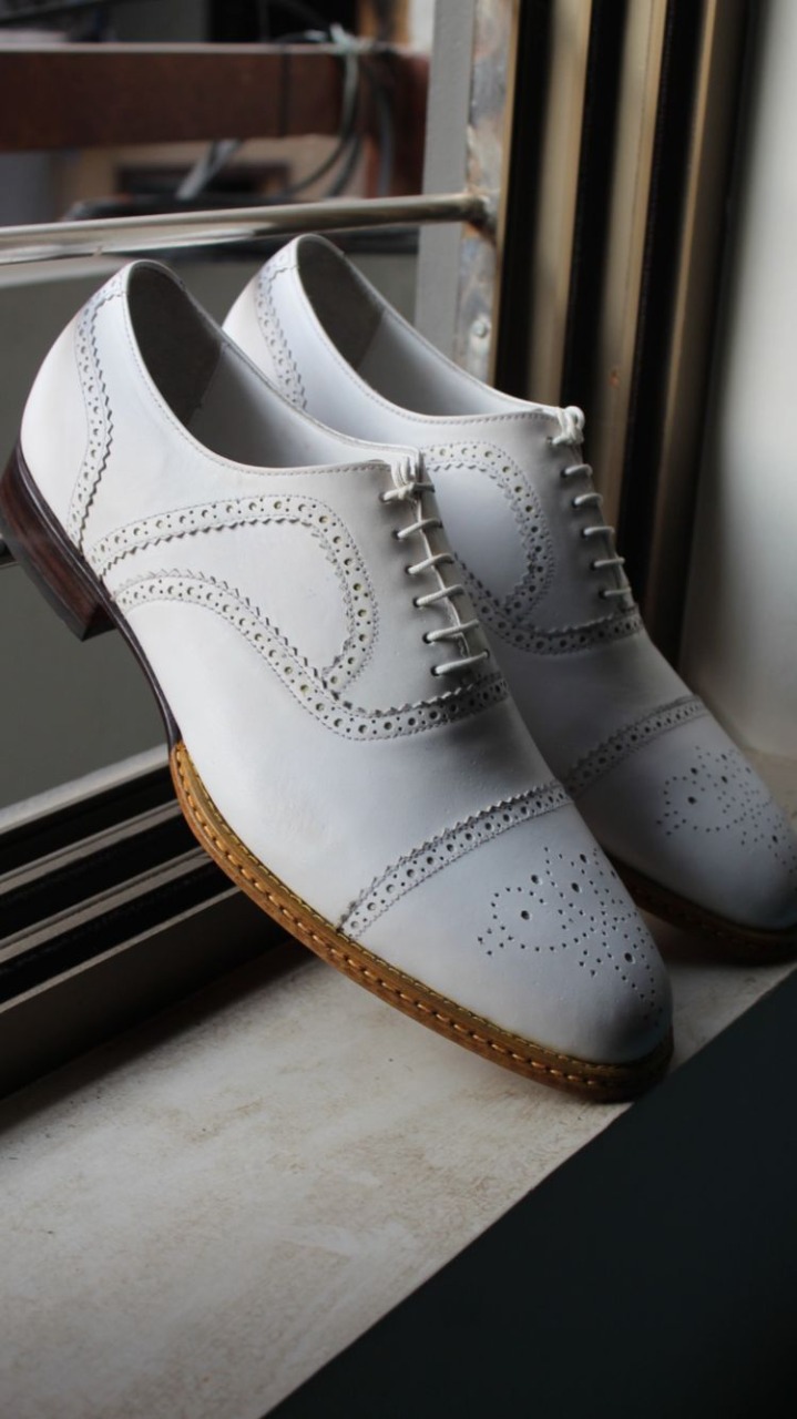 Men's Decent White Oxfords Cap Toe Lace Up Dress Shoes