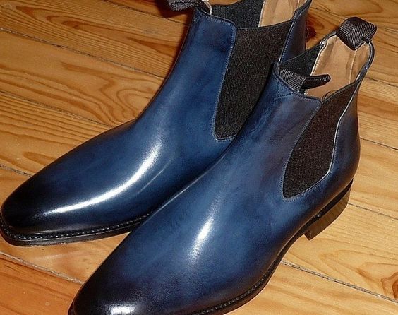 Top Trendy Men's Handmade Navy Blue Boot, Chelsea Leather Hiking Boot