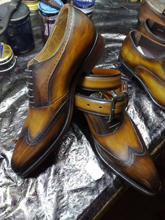 Men's Handmade Brown Leather Beautiful Polishing Patina Touch Dress Shoes