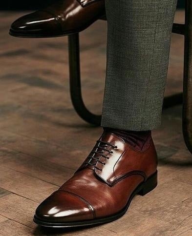Men's Two tone Touch Brown Leather Real Oxfords Handmade Lace Up Shoes Cap Toe Edition