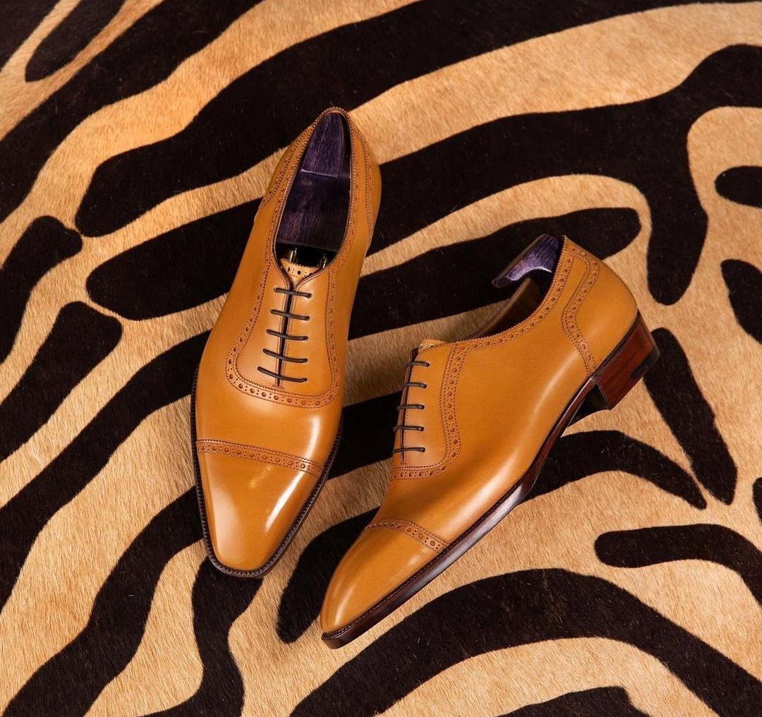 Hand Stitch Mustard Skin Cap Toe Oxfords Bespoke Formal Lace Up Shoes