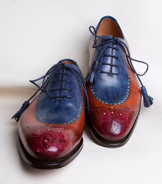 Men's Handmade Multi Shading 3 Tone Brogue Lace Up Formal Shoes