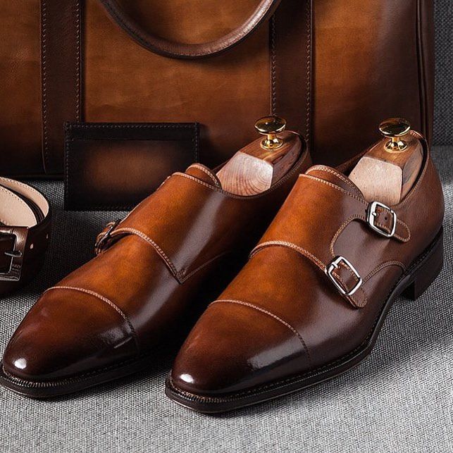 Hand Craft Special Edition Manufacture For Christmas Brown Double Monk Strap Shoes