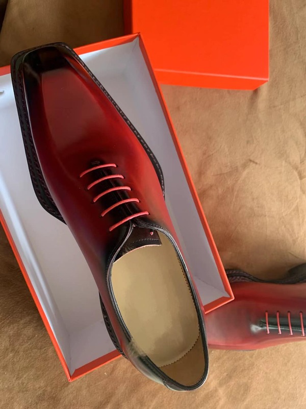 Men's Handmade Best Designed Red Leather With Black Tonish Lace Up Formal Wear Shoes