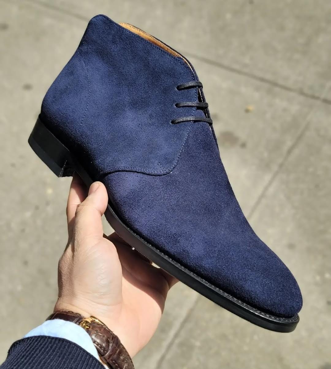 Handmade Navy Blue Suede Chukka nBoots Vintage Victorian Style Men’s Dress Boots Formal Cap Toe Ankle Boots Groomsmen Wedding Shoes
